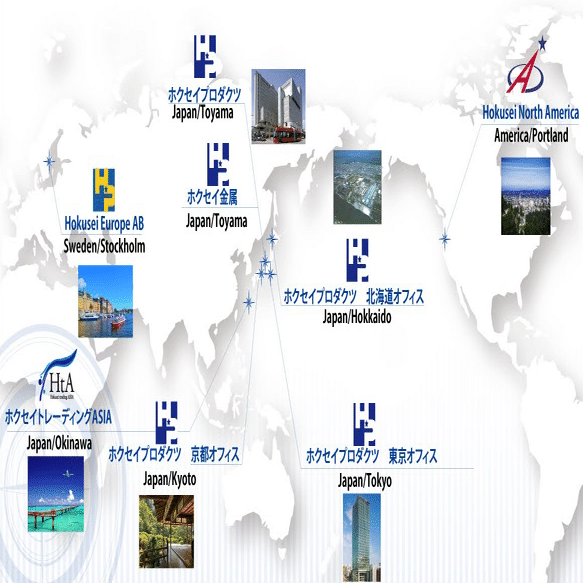 私たちホクセイグループは、富山に本社を置きながら、国内では北は北海道、南は沖縄、海外では北欧・北米まで拠点を展開しています。