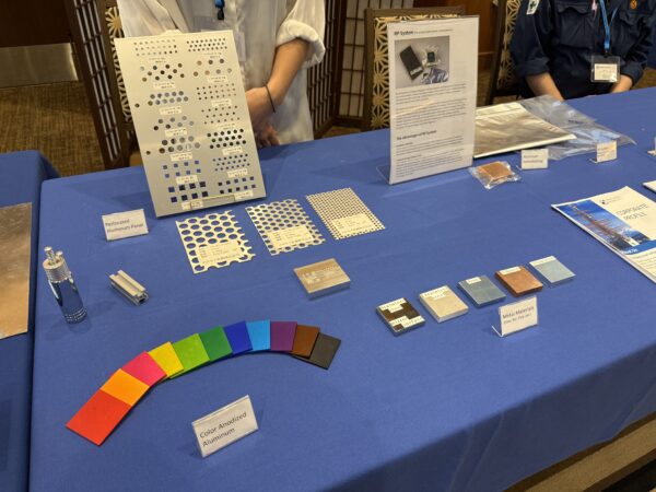 弊社からは、アルミニウムやステンレスなどの金属材料をはじめ、協力先様のお力添えをいただき、穴あけなどの簡単な部品から医療機器用や自動車向けなどの精密な加工品を展示させていただきました。